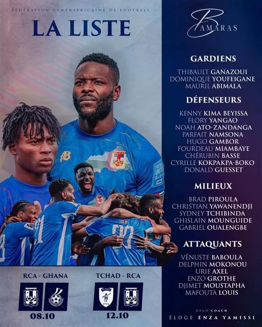 Face à une équipe ghanéenne encore en lice pour sa qualification à la Coupe du Monde 2026, les Fauves du Bas-Oubangui défendront fièrement leurs couleurs et leur rang au classement FIFA.