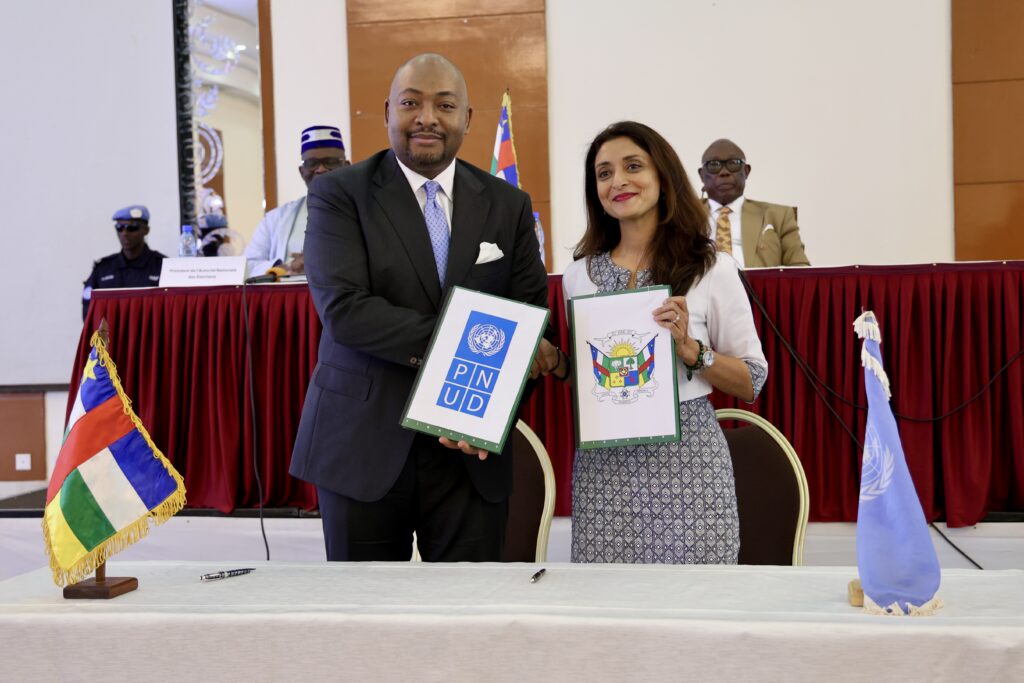 Le gouvernement de la République centrafricaine et le Programme des Nations Unies pour le développement (PNUD) ont signé un accord de financement d’un montant de 4,7 millions de dollars américains destiné à l’acquisition du matériel électoral.
