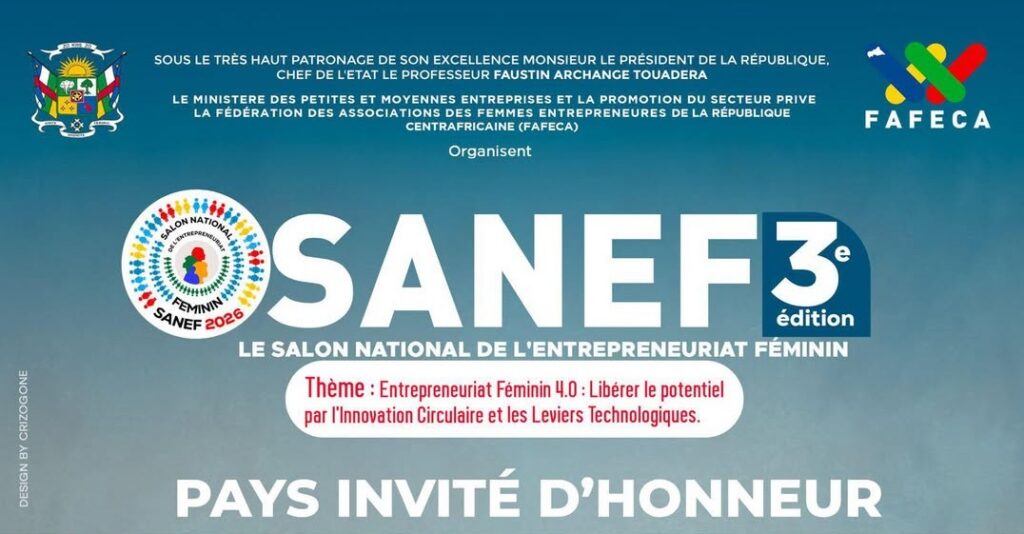 La 3ᵉ édition du SANEF (Salon National de l’Entrepreneuriat Féminin), prévue du 9 au 16 mars 2026, s’annonce comme un rendez-vous majeur pour la promotion du leadership féminin et de l’innovation économique en République centrafricaine. Car cette année, l’événement met à l’honneur le Maroc, reconnu comme l’un des hubs économiques les plus dynamiques du continent africain, doté d’un écosystème entrepreneurial moderne et orienté vers le digital, l’industrialisation et l’économie verte.