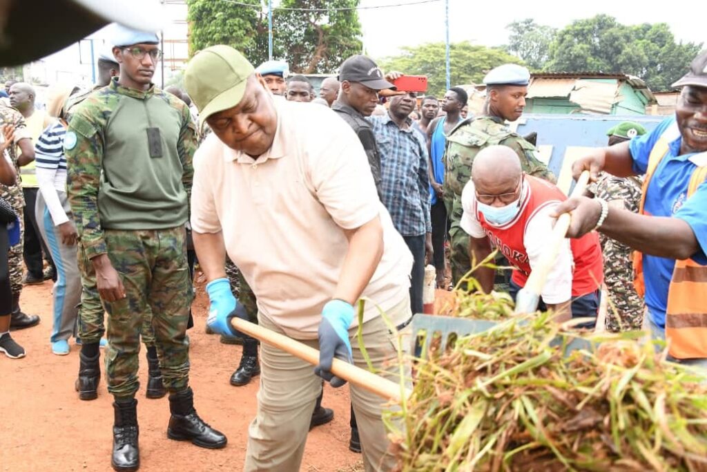 Le président centrafricain Faustin Archange Touadera, en participant activement à l’opération « KWA TI KODRO » (travail du pays) le samedi 28 février 2026, a donné l’exemple en nettoyant le marché Combattant. à Bangui. Cette action citoyenne vise à assainir la capitale, lutter contre les inondations et encourager les populations à mieux gérer leurs déchets ménager.
